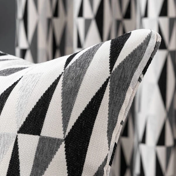 Designed with a modern triangle pattern, this stylish chenille cushion offers a choice of trendy colourways which will add a sophisticated touch to your décor. Soft to the touch, this cushion features a plump filling that will offer support and comfort and a removable cover for your convenience. Coordinating curtains are available separately in a variety of widths and drops to complete the look.